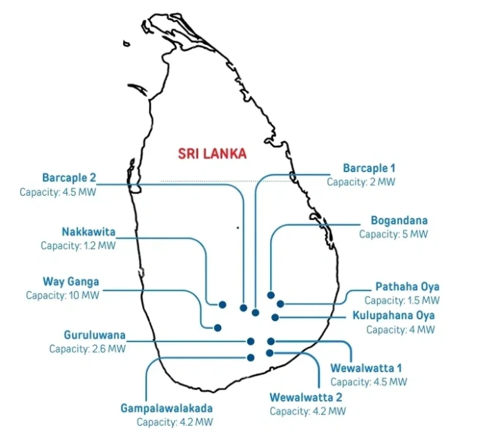 Some of the EPC projects delivered by PRS team members before establishing PRS in Sri Lanka are shown on the map in blue